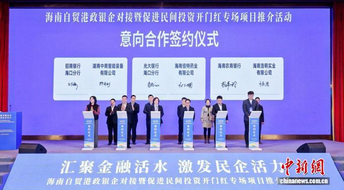 1月8日,海南自贸港政银企对接暨促进民间投资开门红专场项目推介活动在海口举办,现场进行意向合作签约。中新网记者 王子谦 摄